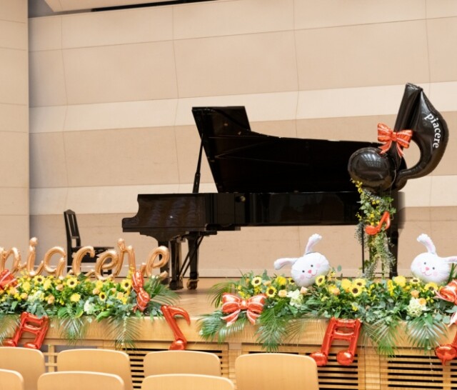 1年に1回開催する教室主催の発表会では、大きな舞台で演奏し一生の思い出に残るような演出をいたします。